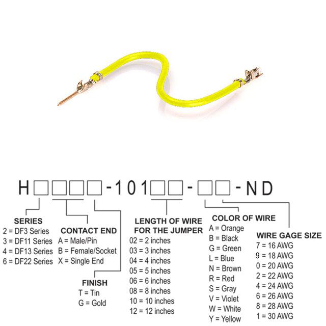 This is manufactured by Hirose Electric Co Ltd. The manufacturer part number is H3ABT-10105-Y8. It is assigned with possible HTSUS value of 8544.42.9090. The product is rohs compliant. It features 1 conductors. It comes in 1 of rows. It is also integrated with a socket to pin contact end. It is shipped in bulk. Moreover, the product has a wire gauge of 28 awg. Furthermore, the product is galvanized with excellent tin contact finishing. Its typical moisture sensitivity level is 1 (unlimited). Its accurate length is 5.00" (127.00mm). It has a classic yellow colour. The product df11, is a highly preferred choice for users. Moreover, it corresponds to h3abt, a base product number of the product. The product is designated with the ear99 code number