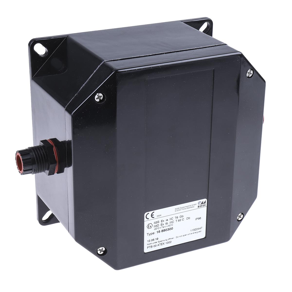This is Black Polyester Junction Box IP66 12 Terminals ATEX 161 x 161 x 95mm manufactured by Rose. The manufacturer part number is 168803008. The product is made from highly stable and reliable polyester. In addition, the height is 95mm. Furthermore, the product is 161mm wide. Its accurate length is 161mm.