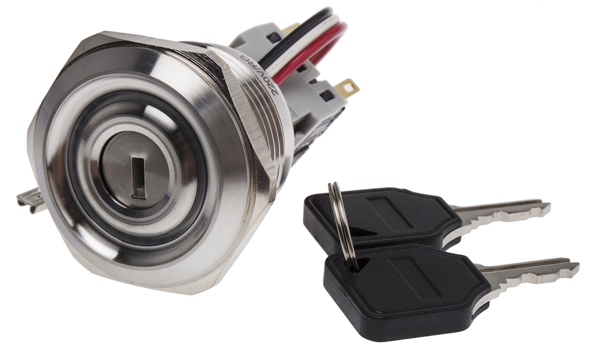 This is IP40 Key Switch DPDT 5 A 2-Way -20 → +55°C manufactured by RS Pro. The manufacturer part number is 877-1924. The product carries possible position value of 2. Typical depth of 52mm behind panel. Whereas, the minimum operating temperature of the product is -20°c. The product also provide mechanical stability with 50000operace. It has a maximum operating temperature of +55°c. The terminal is a solder type. The product is made from sturdy silver materials.