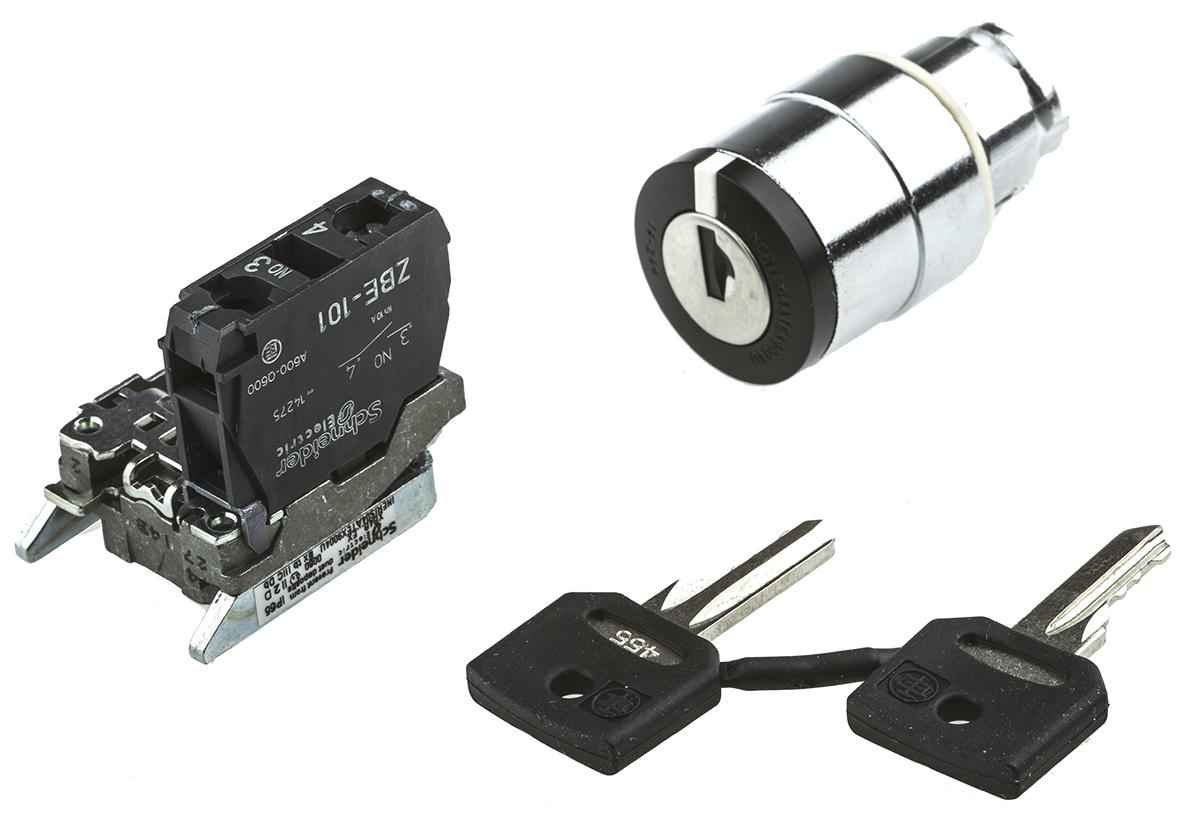 This is XB4 2 positions Metal Screw Key Switch 1NO 0.55 (dc) A 6 (ac) A 22mm IP65 455 600V 600V 2 Stay Put manufactured by Schneider Electric. The manufacturer part number is XB4BG21EX. The product carries possible position value of 2. Whereas, the minimum operating temperature of the product is -40°c. The product also provide mechanical stability with 3000000. It has a maximum operating temperature of +70°c. The terminal is a screw type. The product is made from sturdy silver alloy materials.