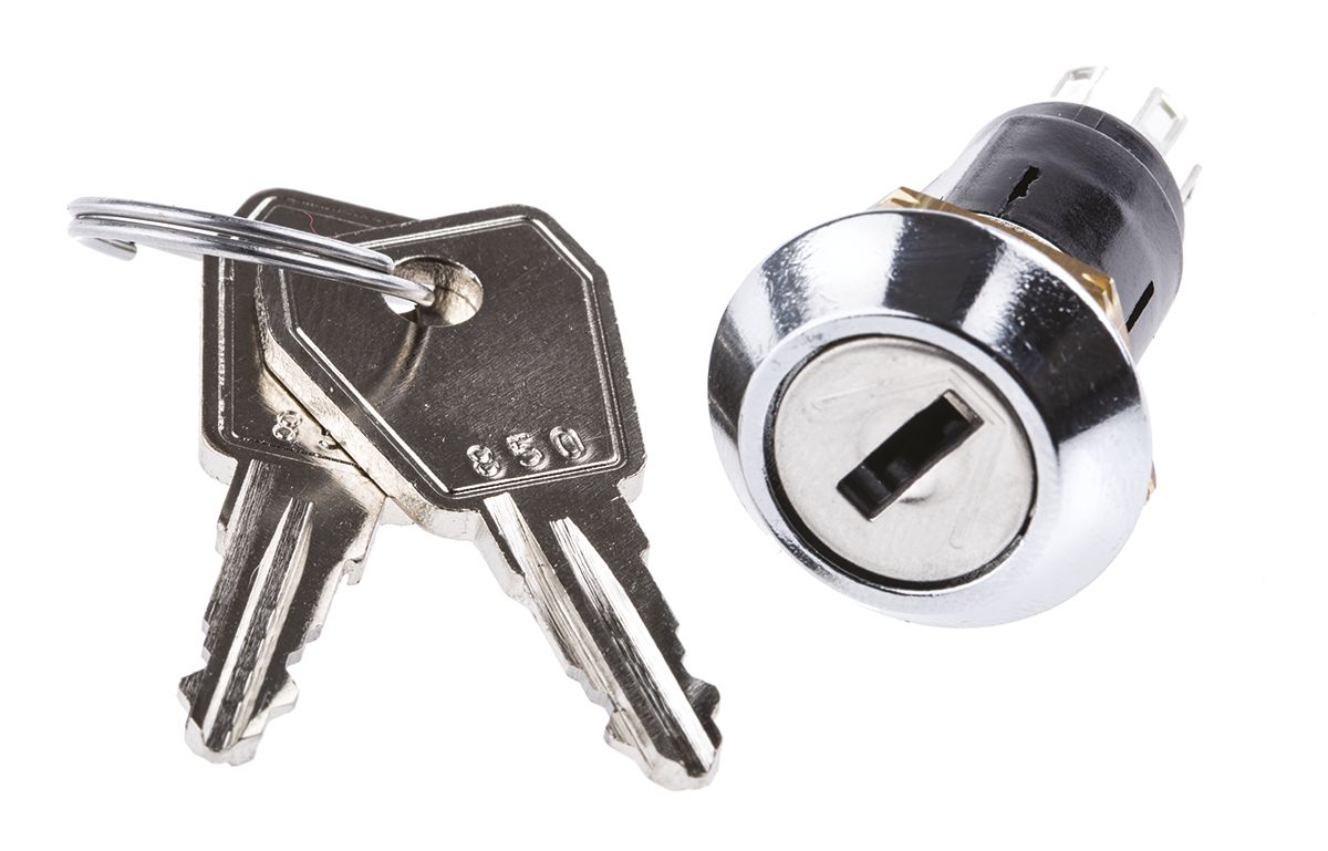This is Key Switch SP-CO 3 A @ 50 V dc 5 A @ 115 V ac 2-Way -20 → +65°C manufactured by Lorlin. The manufacturer part number is SRL5DS2850. The product carries possible position value of 2. Typical depth of 22.4mm behind panel. Whereas, the minimum operating temperature of the product is -20°c. The product also provide mechanical stability with 10000operations. It has a maximum operating temperature of +65°c. The terminal is a solder type. The product is made from sturdy silver plated brass materials.