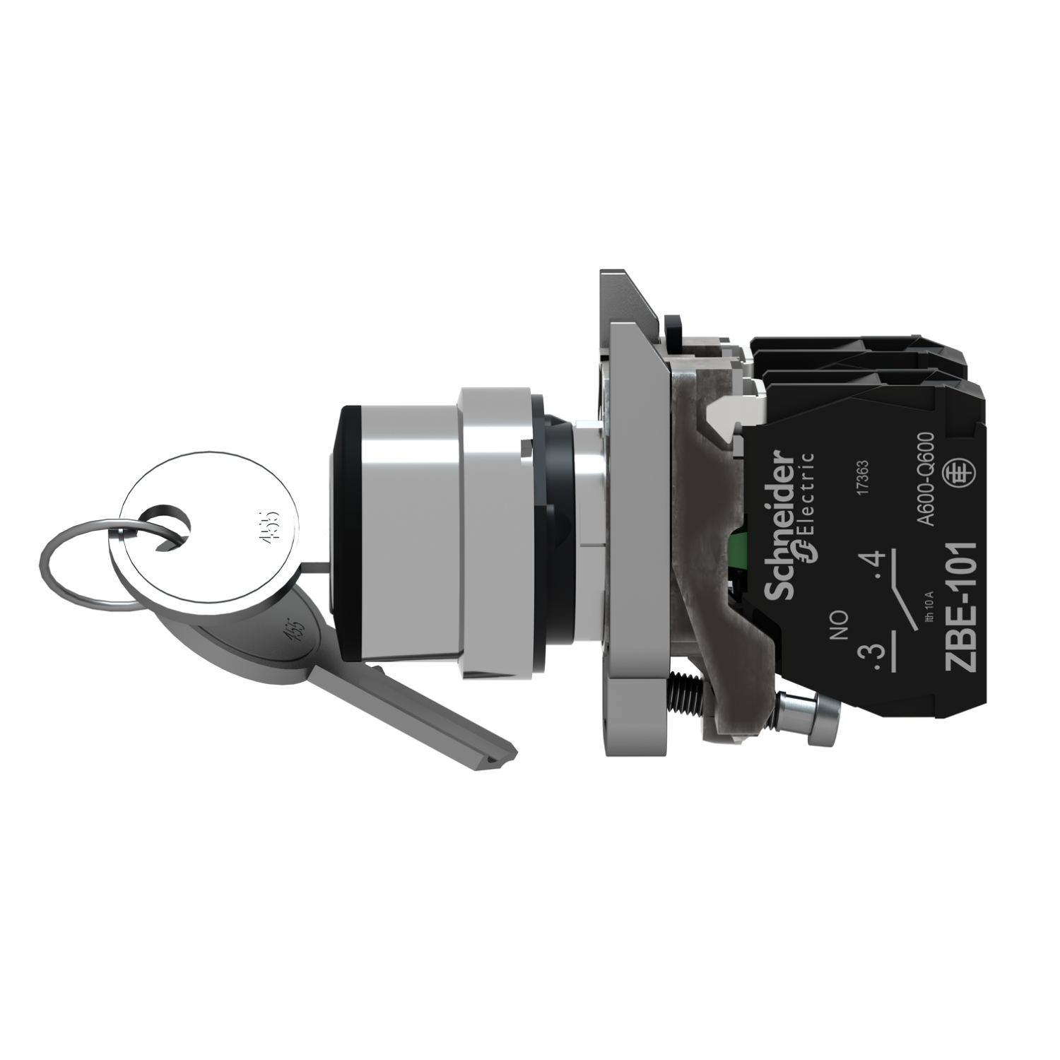 This is Harmony XB4 3 positions Metal Screw Key Switch 2NO 6 A ac 550 mA dc 22mm IP66 IP67 IP69 IP69K manufactured by Schneider Electric. The manufacturer part number is XB4BG03. The product carries possible position value of 3. Whereas, the minimum operating temperature of the product is -40°c. The product also provide mechanical stability with 1000000. It has a maximum operating temperature of +70°c. The terminal is a screw type. The product is made from sturdy silver alloy materials.