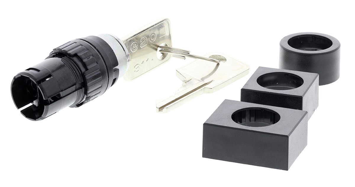 This is IP65 (Front); IP40 (Rear) Key Switch 5 A @ 250 V ac 2-Way -25 → +55°C manufactured by EAO. The manufacturer part number is 61-9210.0,61-9220.0,61-9230.0,61-2201.0/D. Typical depth of 42mm behind panel. Whereas, the minimum operating temperature of the product is -25°c. The product also provide mechanical stability with 50000operations. It has a maximum operating temperature of +55°c. The product carries possible position value of 2. The product is made from sturdy gold plated silver materials.