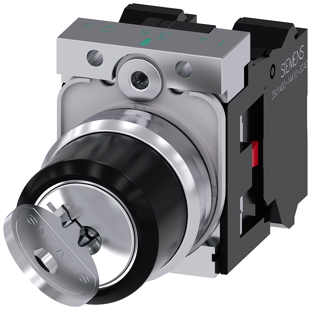 This is Key-operated switch RONIS 22 mm round manufactured by Siemens. The manufacturer part number is 3SU1150-4BF01-3PA0. Whereas, the minimum operating temperature of the product is -25°c. The product also provide mechanical stability with 300000. It has a maximum operating temperature of +70°c. The product carries possible position value of 2.