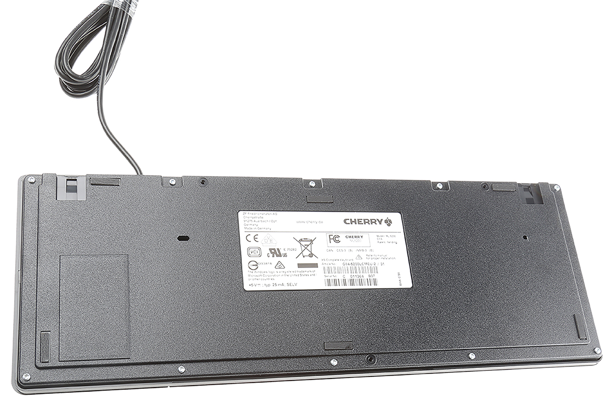 This is Wired Black PS/2 USB Compact Keyboard QWERTY (US) manufactured by Cherry. The manufacturer part number is G84-5200LCMEU-2. The given dimensions of the product include 374 x 139 x 18mm. In addition, the height is 18mm. Furthermore, the product is 374mm wide. The product comes in 139mm depth.