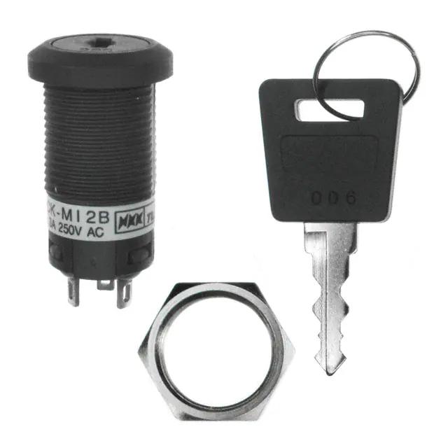 This is manufactured by NKK Switches. The manufacturer part number is CKM12BFW01-006. It is assigned with possible HTSUS value of 8536.50.9020. The product is rohs3 compliant. The product offers long-lasting services of 10,000 cycles. Moreover, it has solder lug terminal style. The product has -25°c ~ 70°c operating temperature range. It also has a circular - 16.00mm dia dimensional features. The product also provide mechanical stability with 30,000 cycles. The product carries possible position value of 2. The product exhibits 250 v of AC voltage rating. In addition, it is reach unaffected. It has a 31.20mm depth behind flange. It is shipped in box. It has a throw angle 90°. It is designed as a on-on switching function. Furthermore, the product is galvanized with excellent silver contact finishing. Its typical moisture sensitivity level is 1 (unlimited). It has an integral spdt circuit. It has a long 11 weeks standard lead time. Additionally, the product's output is 3a (ac) Contact Timing Options: non-shorting (bbm). The splendid features of the product include epoxy sealed terminals. The product is available in panel mount configuration. The product ck, is a highly preferred choice for users. The product carries flat key actuator. The product is designated with the ear99 code number Moreover, it corresponds to ckm12bfw, a base product number of the product. The product is made from sturdy silver (ag) materials.