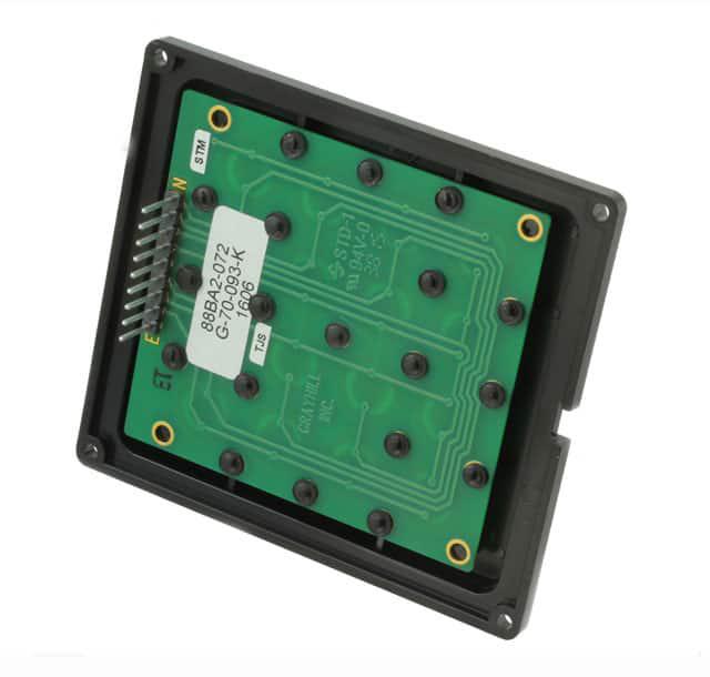 This is manufactured by Grayhill Inc.. The manufacturer part number is 88BA2-072. It is assigned with possible HTSUS value of 8537.10.9170. The product is rohs3 compliant. Moreover, it has pin header terminal style. In addition, it is reach unaffected. Furthermore, it has amatrix output. Legend Information: 0 ~ 9, a ~ f. It is shipped in bulk. Its typical moisture sensitivity level is 1 (unlimited). The given contact rating of the product and its voltage includes 0.01a @ 24vdc. It has a long 9 weeks standard lead time. It is IP rated with ip42. The product is available in panel mount, front or rear configuration. The product 88, is a highly preferred choice for users. The product has -40°c ~ 80°c operating temperature range. Is this product illuminated? non-illuminated. The product is designated with the ear99 code number Moreover, it corresponds to 88ba2, a base product number of the product. Quality product with a snap dome switch type.