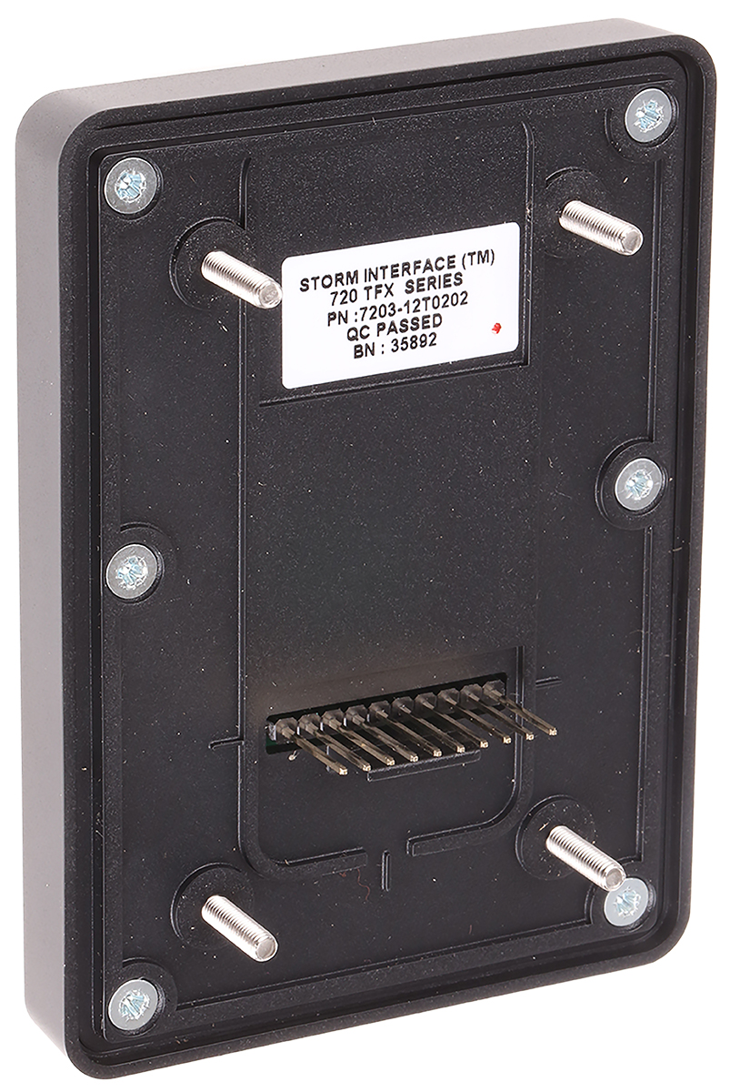 This is IP65 12 Key Polymer Keypad manufactured by Storm. The manufacturer part number is 7203-12T0202. Typical depth of 12mm behind panel. Whereas, the minimum operating temperature of the product is -20°c. It has a maximum operating temperature of +60°c. The actuator is designed from sturdy plastic material.