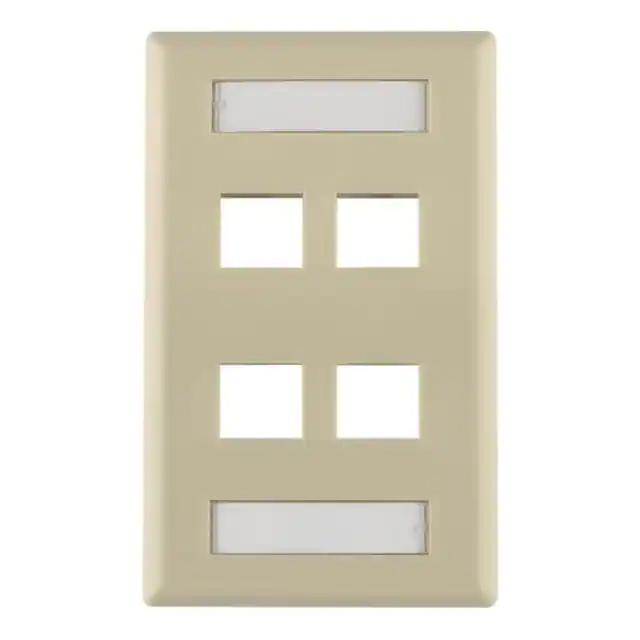 This is manufactured by HellermannTyton. The manufacturer part number is FPIHQUAD-I. Additionally, the product is designed with single gang Style. It is assigned with possible HTSUS value of 3926.90.9985. The product is rohs compliant. Furthermore, the product is 2.756" (70.00mm) wide. It comes in faceplate configuration. The product is made from highly stable and reliable acrylonitrile butadiene styrene (abs). It carries ul94 v-0 of material flammability rating. It is shipped in bulk. Its typical moisture sensitivity level is 1 (unlimited). This product features 4 number of ports. The product comes in 0.441" (11.20mm) depth. The splendid features of the product include label cover/holder with labels, mounting hardware. It has a classic ivory colour. Its accurate length is 4.508" (114.50mm). The product is suitable for use with modular jacks. Moreover, it corresponds to fpihquad, a base product number of the product. The product is designated with the ear99 code number