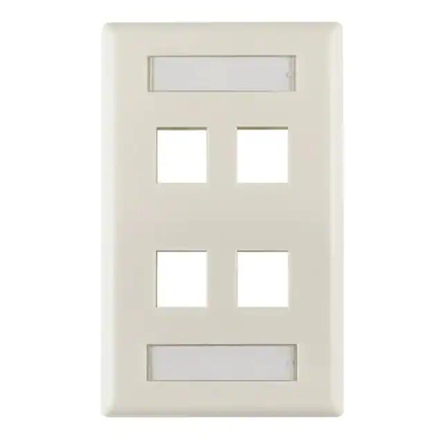 This is manufactured by HellermannTyton. The manufacturer part number is FPIQUAD-FW. Additionally, the product is designed with single gang Style. It is assigned with possible HTSUS value of 3926.90.9985. The product is rohs compliant. Furthermore, the product is 2.750" (69.85mm) wide. It comes in faceplate configuration. The product is made from highly stable and reliable acrylonitrile butadiene styrene (abs). It carries ul94 v-0 of material flammability rating. It is shipped in bulk. Its typical moisture sensitivity level is 1 (unlimited). This product features 4 number of ports. The product comes in 0.220" (5.60mm) depth. It has a long 11 weeks standard lead time. The splendid features of the product include label cover/holder with labels, mounting hardware. It has a classic white, off colour. Its accurate length is 4.500" (114.30mm). The product is suitable for use with modular jacks. Moreover, it corresponds to fpiquad, a base product number of the product. The product is designated with the ear99 code number