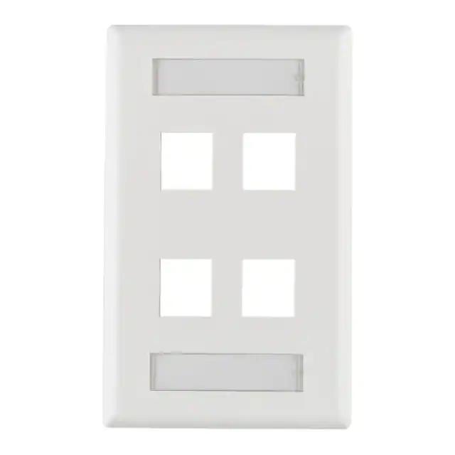 This is manufactured by HellermannTyton. The manufacturer part number is FPIQUAD-W. Additionally, the product is designed with single gang Style. It is assigned with possible HTSUS value of 3926.90.9985. The product is rohs compliant. Furthermore, the product is 2.750" (69.85mm) wide. It comes in faceplate configuration. The product is made from highly stable and reliable acrylonitrile butadiene styrene (abs). It carries ul94 v-0 of material flammability rating. It is shipped in bulk. Its typical moisture sensitivity level is 1 (unlimited). This product features 4 number of ports. The product comes in 0.220" (5.60mm) depth. It has a long 11 weeks standard lead time. The splendid features of the product include label cover/holder with labels, mounting hardware. It has a classic white colour. Its accurate length is 4.500" (114.30mm). The product is suitable for use with modular jacks. Moreover, it corresponds to fpiquad, a base product number of the product. The product is designated with the ear99 code number