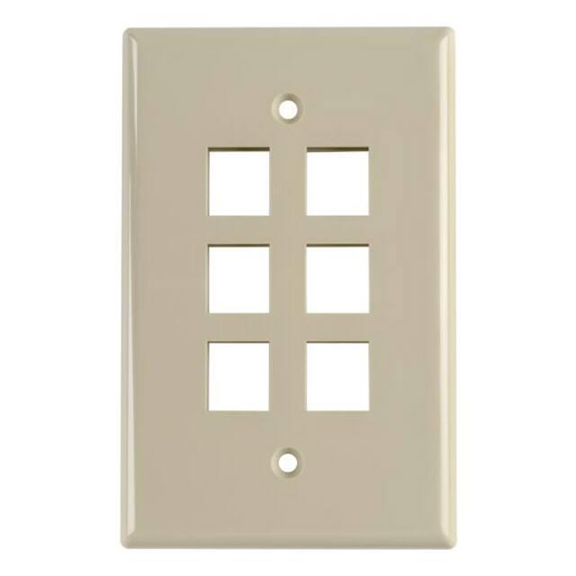 This is manufactured by HellermannTyton. The manufacturer part number is FPMSIX-I. Additionally, the product is designed with single gang Style. It is assigned with possible HTSUS value of 3926.90.9985. The product is rohs compliant. Furthermore, the product is 3.100" (78.74mm) wide. It comes in faceplate configuration. The product is made from highly stable and reliable acrylonitrile butadiene styrene (abs). It carries ul94 v-0 of material flammability rating. It is shipped in bulk. Its typical moisture sensitivity level is 1 (unlimited). This product features 6 number of ports. It has a classic ivory colour. Its accurate length is 4.800" (121.92mm). The product is suitable for use with modular jacks. Moreover, it corresponds to fpmsix, a base product number of the product. The product is designated with the ear99 code number