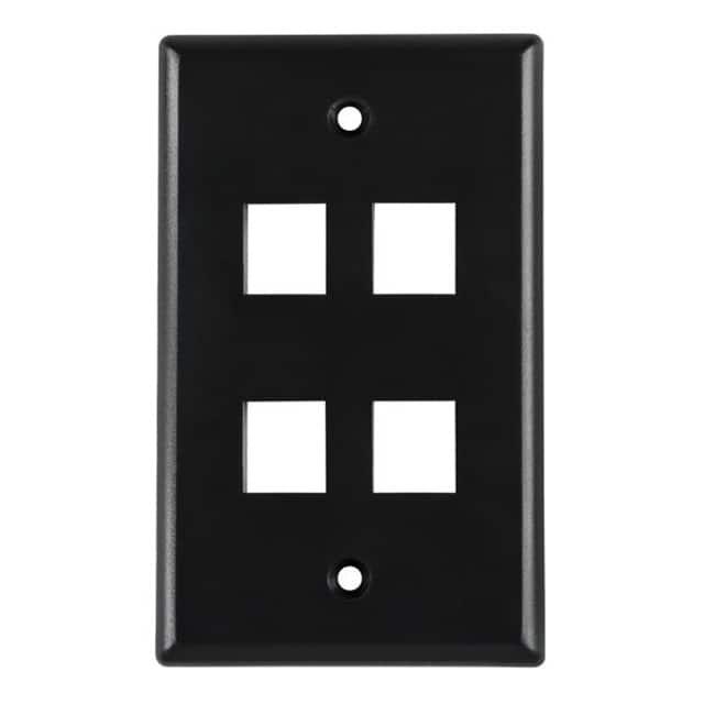 This is manufactured by HellermannTyton. The manufacturer part number is FPQUAD-BK. Additionally, the product is designed with single gang Style. It is assigned with possible HTSUS value of 3926.90.9985. Furthermore, the product is 2.756" (70.00mm) wide. It comes in faceplate configuration. The product is made from highly stable and reliable acrylonitrile butadiene styrene (abs). It carries ul94 v-0 of material flammability rating. It is shipped in bulk. Its typical moisture sensitivity level is 1 (unlimited). This product features 4 number of ports. The product comes in 0.217" (5.50mm) depth. It has a classic black colour. Its accurate length is 4.500" (114.30mm). The product is suitable for use with modular jacks. Moreover, it corresponds to fpquad, a base product number of the product. The product is designated with the ear99 code number