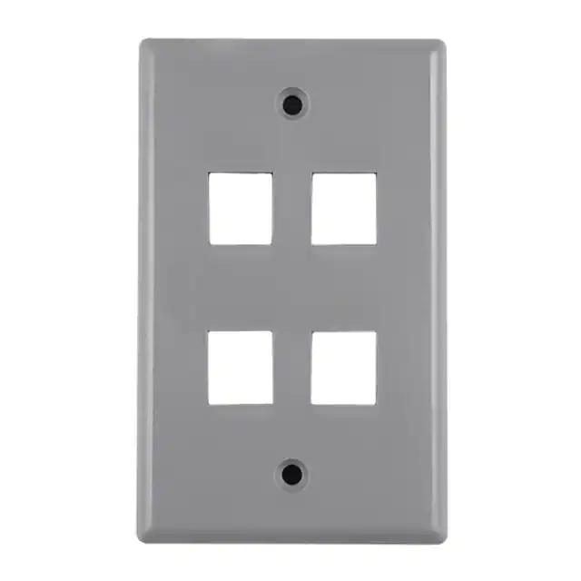This is manufactured by HellermannTyton. The manufacturer part number is FPQUAD-GRY. Additionally, the product is designed with single gang Style. It is assigned with possible HTSUS value of 3926.90.9985. The product is rohs compliant. Furthermore, the product is 2.756" (70.00mm) wide. It comes in faceplate configuration. The product is made from highly stable and reliable acrylonitrile butadiene styrene (abs). It carries ul94 v-0 of material flammability rating. It is shipped in bulk. Its typical moisture sensitivity level is 1 (unlimited). This product features 4 number of ports. The product comes in 0.217" (5.50mm) depth. It has a classic gray colour. Its accurate length is 4.500" (114.30mm). The product is suitable for use with modular jacks. Moreover, it corresponds to fpquad, a base product number of the product. The product is designated with the ear99 code number