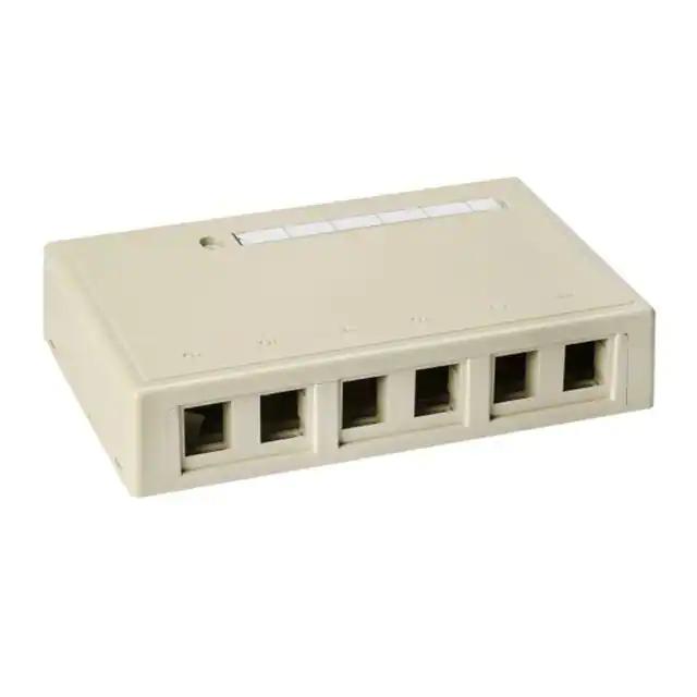This is manufactured by HellermannTyton. The manufacturer part number is SMBSIX-I. The product smb, is a highly preferred choice for users. It is a type of surface mount box accessory. Additionally, the product is designed with surface mount Style. It is assigned with possible HTSUS value of 3923.10.9000. The product is rohs compliant. Furthermore, the product is 6.693" (170.00mm) wide. It comes in mounting box configuration. The product is made from highly stable and reliable polyvinylchloride (pvc). It is shipped in bulk. Its typical moisture sensitivity level is 1 (unlimited). This product features 6 number of ports. The product comes in 1.260" (32.00mm) depth. It has a classic ivory colour. Its accurate length is 4.331" (110.00mm). The product is suitable for use with modular jacks. Moreover, it corresponds to smbsix, a base product number of the product. The product is designated with the ear99 code number