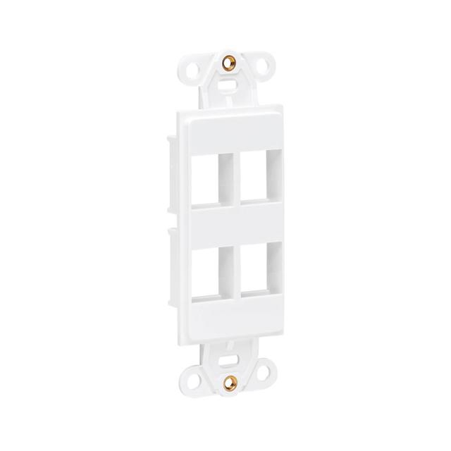 This is manufactured by Tripp Lite. The manufacturer part number is N042D-004V-WH. Additionally, the product is designed with single gang Style. It is assigned with possible HTSUS value of 3926.90.9985. The product is rohs3 compliant. It comes in module frame (106 duplex) configuration. The product is made from highly stable and reliable acrylonitrile butadiene styrene (abs). It is shipped in bulk. Its typical moisture sensitivity level is not applicable. This product features 4 number of ports. It has a long 2 weeks standard lead time. The splendid features of the product include mounting hardware. It has a classic white colour. The product is suitable for use with modular jacks. The product is designated with the ear99 code number