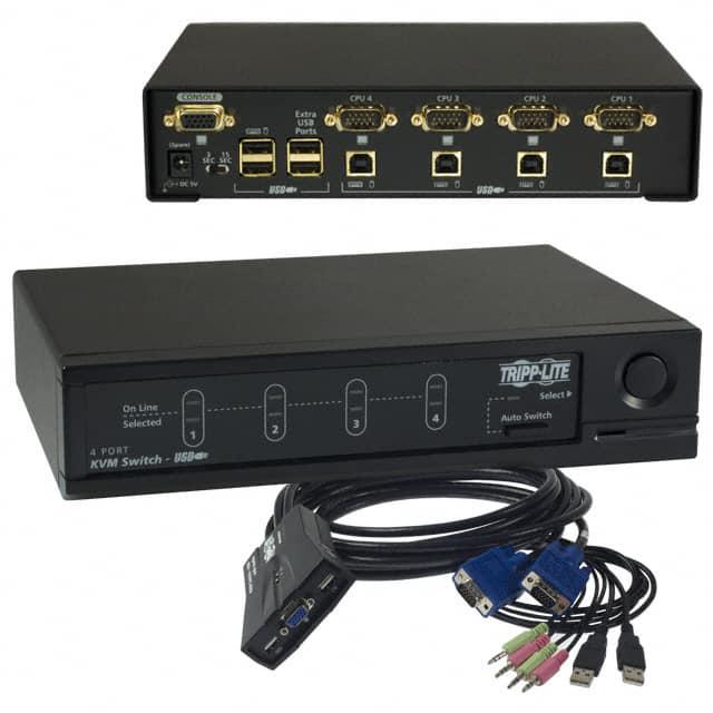 This is manufactured by Tripp Lite. The manufacturer part number is B006-004-R. It is assigned with possible HTSUS value of 8535.30.0080. This product features 4 number of ports. In addition, it is reach unaffected. Its typical moisture sensitivity level is not applicable. It has supplied with other peripherals, such as vga monitor, usb keyboard, usb mouse. The product requires p758-0xx. The product is available in desktop configuration. The product is designated with the ear99 code number It comes in network kvm configuration. The product is available in 9.00" l x 6.00" w x 2.00" h (228.6mm x 152.4mm x 50.8mm) size.