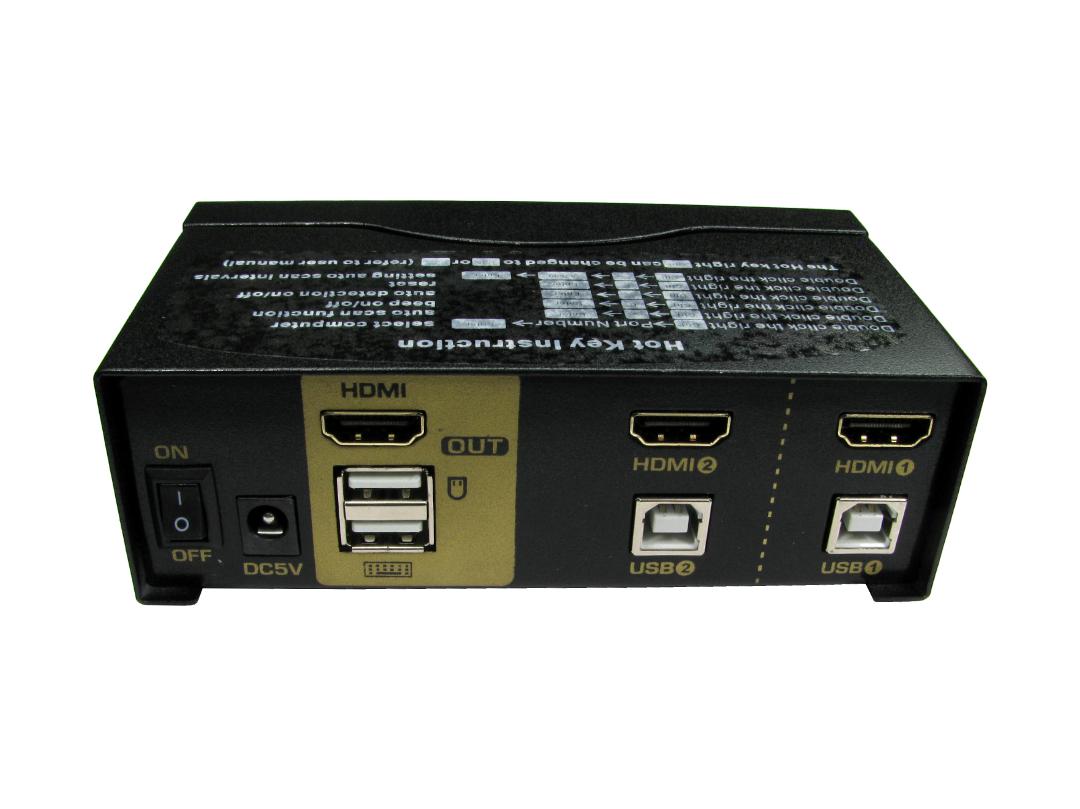 This is 2 Port Dual Monitor USB HDMI KVM Switch - manufactured by RS PRO. The manufacturer part number is 220-6491. The given dimensions of the product include 75 x 130 x 45mm. This product features 2 number of ports.