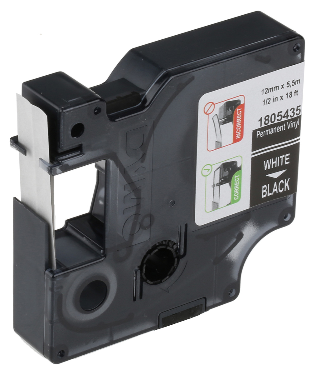 This is DYMO 12 mm White on Black Label Printer Tape manufactured by Dymo. The manufacturer part number is 1805435.