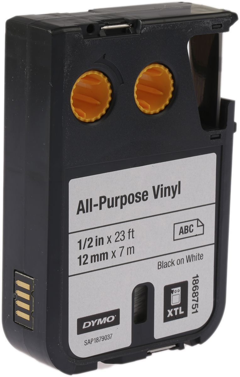 This is DYMO XTL 12 mm Black on White Industrial Vinyl Tape manufactured by Dymo XTL. The manufacturer part number is 1868751.