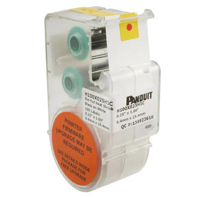 This is manufactured by Panduit Corp. The manufacturer part number is H100X025H1C. It is assigned with possible HTSUS value of 3926.90.9985. The product is rohs3 compliant. Label with a size of 1.00" x 0.25" (25.4mm x 6.4mm). The product has -55°c ~ 135°c operating temperature range. The product is made from highly stable and reliable polyolefin. In addition, it is reach unaffected. It is shipped in box. Its typical moisture sensitivity level is not applicable. A bespoke label is a heat shrinkable, die-cut label. It has a long 4 weeks standard lead time. It has a classic white colour. The product panther™, p1™, is a highly preferred choice for users. The product is suitable for use with panduit ls8e and ls8eq (hand-held). Moreover, it corresponds to h100x025, a base product number of the product. The product is designated with the ear99 code number