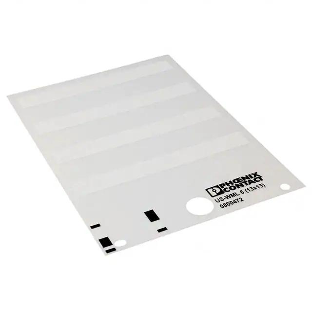 This is manufactured by Phoenix Contact. The manufacturer part number is 0800472. The product us-wml, is a highly preferred choice for users. Furthermore, the product is 32.1 mm wide. Its accurate length is 13mm. Available in 32 quantity. It is assigned with possible HTSUS value of 3919.10.2055. The product is rohs compliant. Label with a size of 0.51" x 0.47" (13.0mm x 12.0mm). The product has -50°c ~ 110°c operating temperature range. The product is made from highly stable and reliable pvc. It is shipped in bulk. Its typical moisture sensitivity level is not applicable. A bespoke label is a standard label. It has a long 8 weeks standard lead time. It has a classic white colour. The product is suitable for use with thermal transfer printer. Moreover, it corresponds to us-wml, a base product number of the product. The product is designated with the ear99 code number