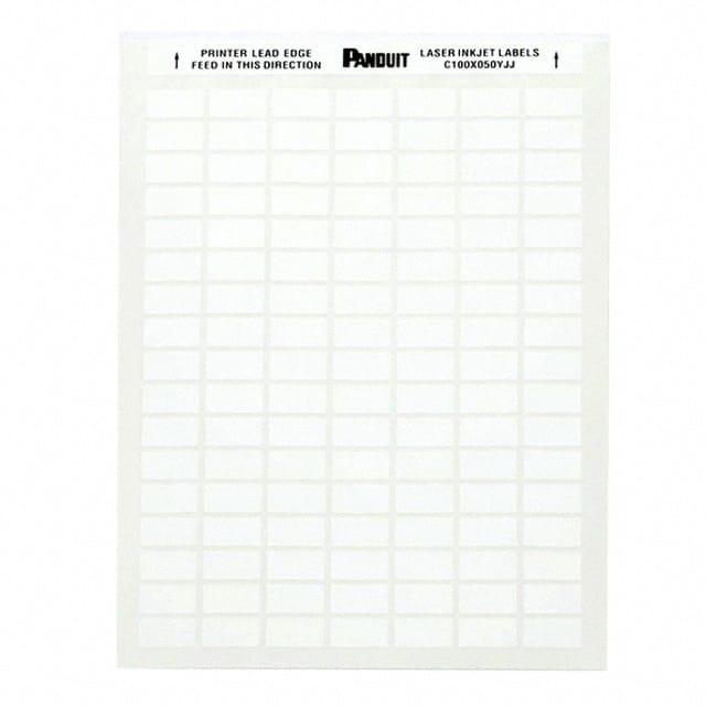 This is manufactured by Panduit Corp. The manufacturer part number is C100X050YJJ. It is assigned with possible HTSUS value of 3919.10.2055. The product is rohs3 compliant. Label with a size of 0.500" w x 1.000" l (12.70mm x 25.40mm). The product's body is manufactured from highly durable polyester (pet) materials. The background colour is white. The product is made from highly stable and reliable polyester. In addition, it is reach unaffected. The product is widely employed in component. It is shipped in bulk. Its typical moisture sensitivity level is not applicable. Its accurate length is 1.000" (25.40mm). A bespoke label is a die cut label. It has a long 4 weeks standard lead time. Furthermore, the product is 0.500" (12.70mm) wide. The product is suitable for use with thermal transfer printer. Moreover, it corresponds to c100x050, a base product number of the product. The product is designated with the ear99 code number