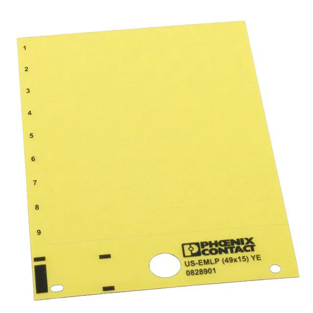 This is manufactured by Phoenix Contact. The manufacturer part number is 0828901. Furthermore, the product is 14.9mm wide. Its accurate length is 48.7mm. It is assigned with possible HTSUS value of 3919.90.5060. The product is rohs compliant. The product's body is manufactured from highly durable pvc materials. The background colour is yellow. The product is widely employed in device marker. It is shipped in bulk. Its typical moisture sensitivity level is 1 (unlimited). Its accurate length is 1.917" (48.70mm). A bespoke label is a die cut label. It has a long 7 weeks standard lead time. Furthermore, the product is 0.587" (14.90mm) wide. The product us-emlp, is a highly preferred choice for users. The product is designated with the ear99 code number