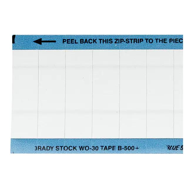 This is manufactured by Brady Corporation. The manufacturer part number is WO-30-PK. It is assigned with possible HTSUS value of 5906.99.1000. The product is rohs3 compliant. The product's body is manufactured from highly durable cloth materials. The background colour is white. In addition, it is reach unaffected. The product is widely employed in cable and wire management. It is shipped in bulk. Its typical moisture sensitivity level is not applicable. Its accurate length is 1.500" (38.10mm). A bespoke label is a die cut label. It has a long 3 weeks standard lead time. Furthermore, the product is 0.437" (11.10mm) wide. Moreover, it corresponds to wo-30, a base product number of the product. The product is designated with the ear99 code number