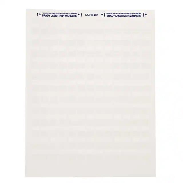 This is manufactured by Brady Corporation. The manufacturer part number is LAT-18-361-1. The background colour is clear, white. The product is rohs3 compliant. The product's body is manufactured from highly durable polyester (pet) materials. It is assigned with possible HTSUS value of 3919.90.5060. In addition, it is reach unaffected. The product is widely employed in cable and wire management. It is shipped in bulk. Its typical moisture sensitivity level is not applicable. Its accurate length is 1.330" (33.78mm). A bespoke label is a die cut label. It has a long 3 weeks standard lead time. Furthermore, the product is 1.000" (25.40mm) wide. The product lasertab, is a highly preferred choice for users. Moreover, it corresponds to lat-18, a base product number of the product. The product is designated with the ear99 code number