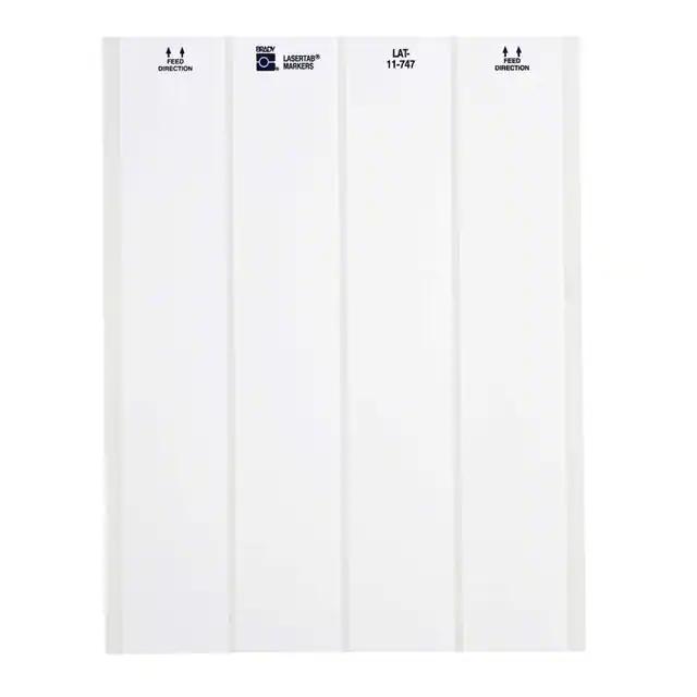 This is manufactured by Brady Corporation. The manufacturer part number is LAT-11-747-5. It is assigned with possible HTSUS value of 3919.90.5060. The product is rohs3 compliant. The product's body is manufactured from highly durable polyester (pet) materials. The background colour is white. In addition, it is reach unaffected. The product is widely employed in general. It is shipped in bulk. Its typical moisture sensitivity level is not applicable. Its accurate length is 1.875" (47.63mm). A bespoke label is a die cut label. It has a long 3 weeks standard lead time. Furthermore, the product is 0.375" (9.53mm) wide. The product lasertab, is a highly preferred choice for users. Moreover, it corresponds to lat-11, a base product number of the product. The product is designated with the ear99 code number