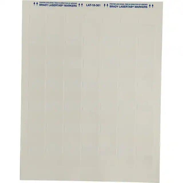 This is manufactured by Brady Corporation. The manufacturer part number is LAT-18-361-0.25. It is assigned with possible HTSUS value of 3919.90.5060. The product is rohs3 compliant. The product's body is manufactured from highly durable polyester, self-laminating materials. The background colour is clear, white. In addition, it is reach unaffected. The product is widely employed in cable and wire management. It is shipped in bulk. Its typical moisture sensitivity level is not applicable. Its accurate length is 1.330" (33.78mm). A bespoke label is a die cut label. It has a long 4 weeks standard lead time. Furthermore, the product is 1.000" (25.40mm) wide. The product brady®, is a highly preferred choice for users. The product is suitable for use with laser printers. Moreover, it corresponds to lat-18, a base product number of the product. The product is designated with the ear99 code number