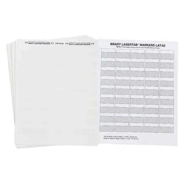 This is manufactured by Brady Corporation. The manufacturer part number is LAT-52-361-1. It is assigned with possible HTSUS value of 3919.90.5060. The product is rohs3 compliant. The product's body is manufactured from highly durable polyester, self-laminating materials. The background colour is clear, white. In addition, it is reach unaffected. The product is widely employed in cable and wire management. It is shipped in bulk. Its typical moisture sensitivity level is not applicable. Its accurate length is 1.500" (38.10mm). A bespoke label is a die cut label. It has a long 4 weeks standard lead time. Furthermore, the product is 1.000" (25.40mm) wide. The product brady®, is a highly preferred choice for users. The product is suitable for use with laser printers. Moreover, it corresponds to lat-52, a base product number of the product. The product is designated with the ear99 code number