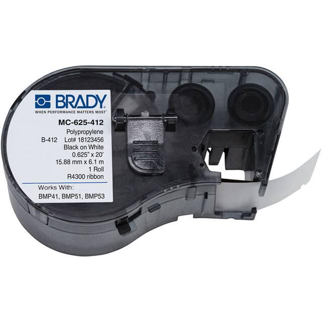 This is manufactured by Brady Corporation. The manufacturer part number is MC-625-412. It is assigned with possible HTSUS value of 8443.99.2550. The product is rohs3 compliant. The product's body is manufactured from highly durable polypropylene materials. Location Information - outdoor. The background colour is white. In addition, it is reach unaffected. The product is widely employed in component. It is shipped in bulk. Its typical moisture sensitivity level is not applicable. Its accurate length is 0.240" (6.09mm). A bespoke label is a die cut label. It has a long 4 weeks standard lead time. Furthermore, the product is 0.625" (15.87mm) wide. The product brady®, is a highly preferred choice for users. The product is suitable for use with thermal transfer printer. Moreover, it corresponds to mc-625, a base product number of the product. The product is designated with the ear99 code number