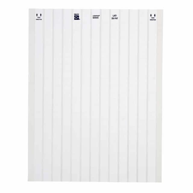 This is manufactured by Brady Corporation. The manufacturer part number is LAT-25-747-10. It is assigned with possible HTSUS value of 3919.90.5060. The product is rohs3 compliant. The product's body is manufactured from highly durable polyester (pet) materials. The background colour is white. In addition, it is reach unaffected. The product is widely employed in general. It is shipped in bulk. Its typical moisture sensitivity level is not applicable. Its accurate length is 0.500" (12.70mm). A bespoke label is a die cut label. It has a long 4 weeks standard lead time. Furthermore, the product is 0.437" (11.10mm) wide. The product lasertab, is a highly preferred choice for users. Moreover, it corresponds to lat-25, a base product number of the product. The product is designated with the ear99 code number