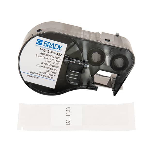 This is manufactured by Brady Corporation. The manufacturer part number is M-209-RO-427. It is assigned with possible HTSUS value of 8443.99.2550. The product is rohs compliant. The product's body is manufactured from highly durable vinyl materials. Location Information - outdoor. The background colour is clear, white. In addition, it is reach unaffected. The product is widely employed in cable and wire management. It is shipped in bag. Its typical moisture sensitivity level is not applicable. Its accurate length is 3.850" (97.79mm). A bespoke label is a die cut label. It has a long 2 weeks standard lead time. Furthermore, the product is 1.000" (25.40mm) wide. The product is designated with the ear99 code number