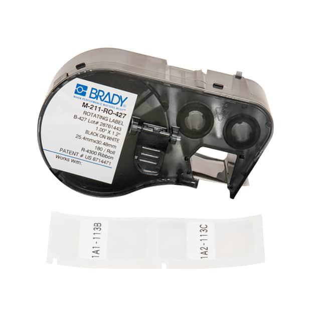 This is manufactured by Brady Corporation. The manufacturer part number is M-211-RO-427. It is assigned with possible HTSUS value of 8443.99.2550. The product is rohs compliant. The product's body is manufactured from highly durable vinyl materials. Location Information - outdoor. The background colour is clear, white. In addition, it is reach unaffected. The product is widely employed in cable and wire management. It is shipped in bag. Its typical moisture sensitivity level is not applicable. Its accurate length is 1.700" (43.18mm). A bespoke label is a die cut label. It has a long 2 weeks standard lead time. Furthermore, the product is 1.000" (25.40mm) wide. The product is designated with the ear99 code number