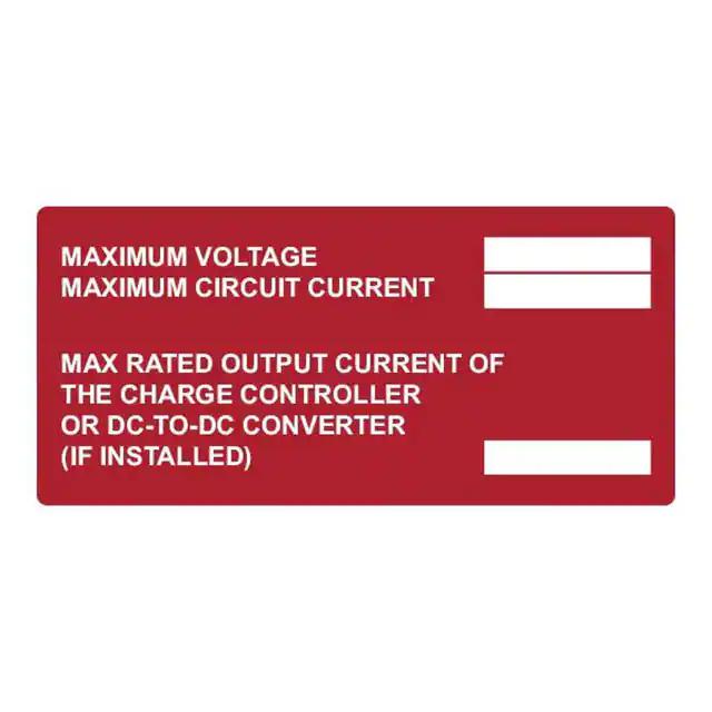 This is manufactured by HellermannTyton. The manufacturer part number is 596-00891. It is rated with nec, ifc. It is assigned with possible HTSUS value of 3919.10.2055. The product is rohs compliant. Furthermore, the product is 2.118" (53.80mm) wide. Location Information - outdoor. The background colour is red, white. It is a rectangle product with unique specifications. The product is widely employed in solar. It is shipped in bulk. Its typical moisture sensitivity level is 1 (unlimited). Its accurate length is 3.750" (95.25mm). It has a long 6 weeks standard lead time. The splendid features of the product include uv resistant, weather resistant. The product is available in adhesive configuration. The product's body is manufactured from highly durable polyester materials. Moreover, it corresponds to 596-00, a base product number of the product. The product is designated with the ear99 code number