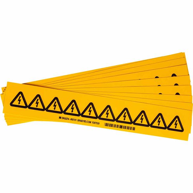 This is manufactured by Brady Corporation. The manufacturer part number is 60191. It is assigned with possible HTSUS value of 3919.90.5060. The product is not applicable. The product's body is manufactured from highly durable vinyl materials. Location Information - outdoor. The background colour is yellow. It is a triangle product with unique specifications. The product is widely employed in electrical. In addition, it is reach unaffected. It is shipped in bulk. Its typical moisture sensitivity level is not applicable. Its accurate length is 1.000" (25.40mm). It has a long 3 weeks standard lead time. The splendid features of the product include abrasion resistant, chemical resistant. The product is available in adhesive configuration. Furthermore, the product is 1.000" (25.40mm) wide. The product is designated with the ear99 code number