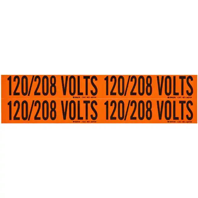 This is manufactured by Brady Corporation. The manufacturer part number is 44259. It is assigned with possible HTSUS value of 5906.99.1000. The product's body is manufactured from highly durable vinyl cloth materials. Location Information - indoor. The background colour is orange. It is a rectangle product with unique specifications. The product is widely employed in electrical. It is shipped in bulk. Its typical moisture sensitivity level is not applicable. Its accurate length is 4.125" (104.78mm). The product is available in adhesive configuration. Furthermore, the product is 1.125" (28.58mm) wide. The product is designated with the ear99 code number