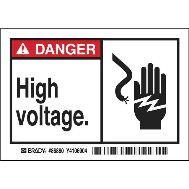 This is manufactured by Brady Corporation. The manufacturer part number is 86860. It is assigned with possible HTSUS value of 3919.90.5060. The product is rohs3 compliant. The product's body is manufactured from highly durable polyester materials. Location Information - outdoor. The background colour is red, white. It is a rectangle product with unique specifications. The product is widely employed in electrical. In addition, it is reach unaffected. It is shipped in bulk. Its typical moisture sensitivity level is not applicable. Its accurate length is 5.000" (127.00mm). It has a long 3 weeks standard lead time. The splendid features of the product include abrasion resistant, chemical resistant. The product is available in adhesive, permanent configuration. Furthermore, the product is 3.500" (88.90mm) wide. The product is designated with the ear99 code number