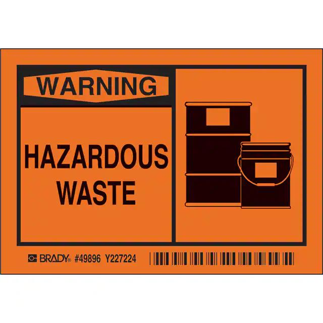 This is manufactured by Brady Corporation. The manufacturer part number is 49896. It is assigned with possible HTSUS value of 3919.90.5060. The product is rohs3 compliant. Furthermore, the product is 3.500" (88.90mm) wide. Location Information - outdoor. The background colour is orange. It is a rectangle product with unique specifications. The product is widely employed in general. In addition, it is reach unaffected. It is shipped in bulk. Its typical moisture sensitivity level is not applicable. Its accurate length is 5.000" (127.00mm). It has a long 4 weeks standard lead time. The product is available in adhesive, permanent configuration. The product's body is manufactured from highly durable polyester (pet) materials. The product brady®, is a highly preferred choice for users. The product is designated with the ear99 code number