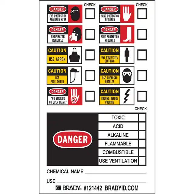 This is manufactured by Brady Corporation. The manufacturer part number is 121442. It is assigned with possible HTSUS value of 3919.90.5060. The product is rohs3 compliant. Furthermore, the product is 3.000" (76.20mm) wide. Location Information - outdoor. The background colour is white. It is a rectangle product with unique specifications. The product is widely employed in facility. In addition, it is reach unaffected. It is shipped in bulk. Its typical moisture sensitivity level is not applicable. Its accurate length is 5.000" (127.00mm). It has a long 4 weeks standard lead time. The splendid features of the product include abrasion resistant, chemical resistant. The product is available in adhesive configuration. The product's body is manufactured from highly durable vinyl materials. The product brady®, is a highly preferred choice for users. The product is designated with the ear99 code number
