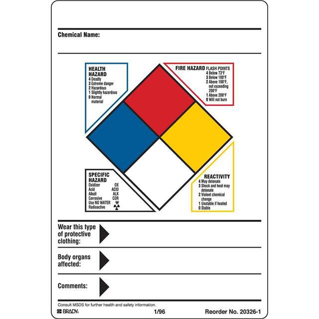 This is manufactured by Brady Corporation. The manufacturer part number is 20326-1LS. It is assigned with possible HTSUS value of 4821.10.4000. The product is rohs3 compliant. Furthermore, the product is 4.000" (101.60mm) wide. Location Information - indoor. The background colour is white. It is a rectangle product with unique specifications. The product is widely employed in facility. In addition, it is reach unaffected. It is shipped in bulk. Its typical moisture sensitivity level is not applicable. Its accurate length is 5.875" (149.23mm). It has a long 4 weeks standard lead time. The product is available in adhesive configuration. The product's body is manufactured from highly durable paper materials. The product brady®, is a highly preferred choice for users. The product is designated with the ear99 code number
