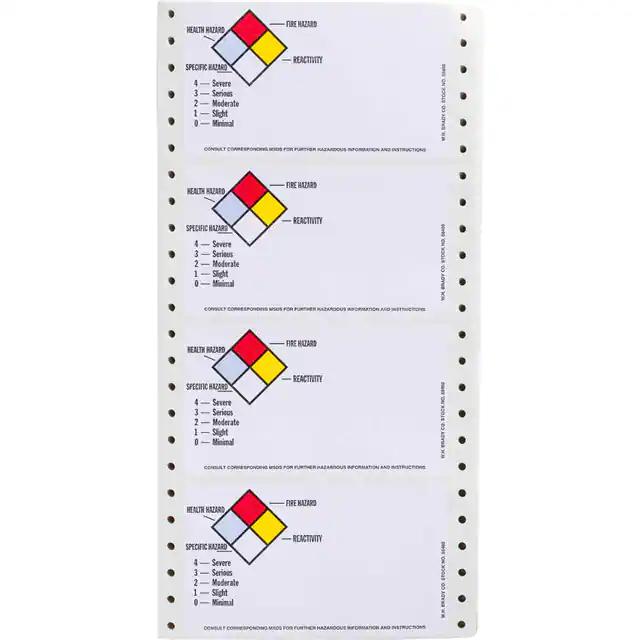 This is manufactured by Brady Corporation. The manufacturer part number is 58460. It is assigned with possible HTSUS value of 4821.10.4000. It is shipped in bulk. The product is rohs3 compliant. In addition, it is reach unaffected. Its typical moisture sensitivity level is not applicable. It has a long 4 weeks standard lead time. The product is designated with the ear99 code number