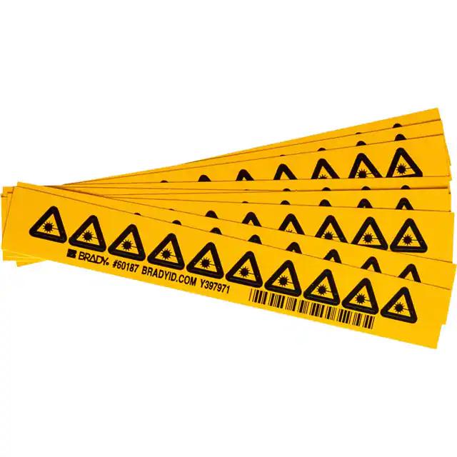 This is manufactured by Brady Corporation. The manufacturer part number is 60187. It is assigned with possible HTSUS value of 3919.90.5060. The product is not applicable. Furthermore, the product is 0.500" (12.70mm) 1/2" wide. Location Information - outdoor. The background colour is yellow. It is a square product with unique specifications. The product is widely employed in facility. In addition, it is reach unaffected. It is shipped in bulk. Its typical moisture sensitivity level is not applicable. Its accurate length is 0.500" (12.70mm) 1/2". It has a long 4 weeks standard lead time. The splendid features of the product include abrasion resistant, chemical resistant, weather resistant. The product is available in adhesive configuration. The product's body is manufactured from highly durable vinyl materials. The product brady®, is a highly preferred choice for users. The product is designated with the ear99 code number