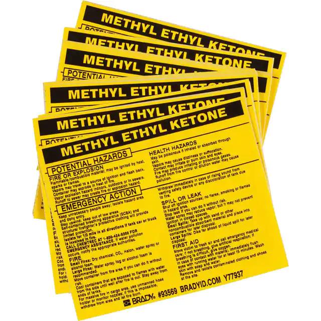 This is manufactured by Brady Corporation. The manufacturer part number is 93569. It is assigned with possible HTSUS value of 3919.90.5060. The product is rohs3 compliant. Furthermore, the product is 3.500" (88.90mm) wide. Location Information - outdoor. The background colour is yellow. It is a rectangle product with unique specifications. The product is widely employed in facility. In addition, it is reach unaffected. It is shipped in bulk. Its typical moisture sensitivity level is not applicable. Its accurate length is 4.500" (114.30mm). It has a long 4 weeks standard lead time. The splendid features of the product include abrasion resistant, chemical resistant. The product is available in adhesive configuration. The product's body is manufactured from highly durable vinyl materials. The product brady®, is a highly preferred choice for users. The product is designated with the ear99 code number