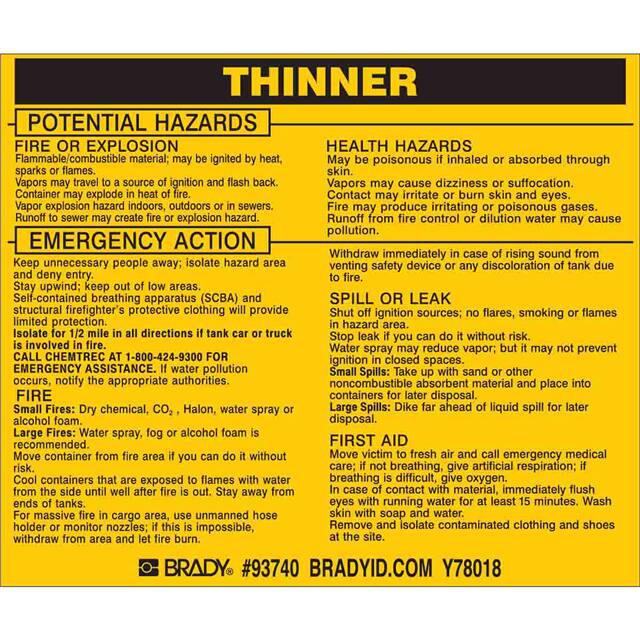 This is manufactured by Brady Corporation. The manufacturer part number is 93740. It is assigned with possible HTSUS value of 3919.90.5060. The product is rohs3 compliant. Furthermore, the product is 3.500" (88.90mm) wide. Location Information - outdoor. The background colour is yellow. It is a rectangle product with unique specifications. The product is widely employed in facility. In addition, it is reach unaffected. It is shipped in bulk. Its typical moisture sensitivity level is not applicable. Its accurate length is 4.500" (114.30mm). It has a long 4 weeks standard lead time. The splendid features of the product include abrasion resistant, chemical resistant. The product is available in adhesive configuration. The product's body is manufactured from highly durable vinyl materials. The product brady®, is a highly preferred choice for users. The product is designated with the ear99 code number