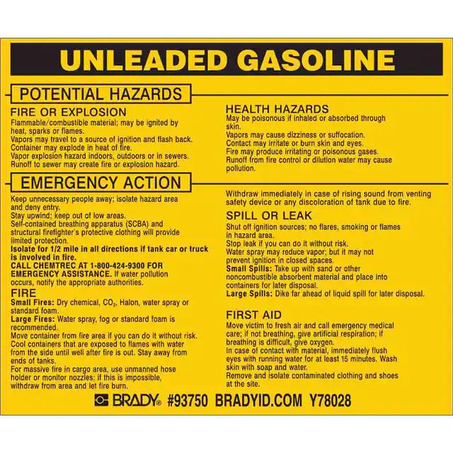 This is manufactured by Brady Corporation. The manufacturer part number is 93750. It is assigned with possible HTSUS value of 3919.90.5060. The product is rohs3 compliant. Furthermore, the product is 3.500" (88.90mm) wide. Location Information - outdoor. The background colour is yellow. It is a rectangle product with unique specifications. The product is widely employed in facility. In addition, it is reach unaffected. It is shipped in bulk. Its typical moisture sensitivity level is not applicable. Its accurate length is 4.500" (114.30mm). It has a long 4 weeks standard lead time. The splendid features of the product include abrasion resistant, chemical resistant. The product is available in adhesive configuration. The product's body is manufactured from highly durable vinyl materials. The product brady®, is a highly preferred choice for users. The product is designated with the ear99 code number