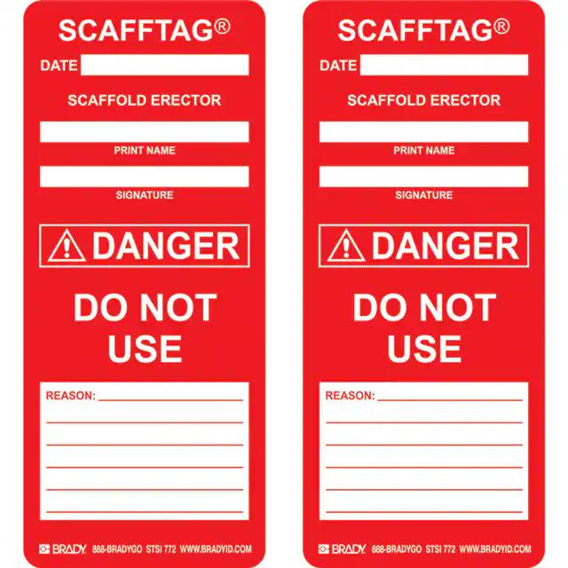 This is manufactured by Brady Corporation. The manufacturer part number is SCAF-STSI 772. It is assigned with possible HTSUS value of 4911.99.8000. The product is rohs3 compliant. Furthermore, the product is 3.250" (82.55mm) wide. Location Information - outdoor. The background colour is red. It is a rectangle product with unique specifications. The product is widely employed in general. In addition, it is reach unaffected. It is shipped in bulk. Its typical moisture sensitivity level is not applicable. Its accurate length is 7.625" (193.68mm). It has a long 4 weeks standard lead time. The product is available in adhesive configuration. The product's body is manufactured from highly durable polyester (pet) materials. The product brady®, is a highly preferred choice for users. Moreover, it corresponds to scaf-stsi, a base product number of the product. The product is designated with the ear99 code number